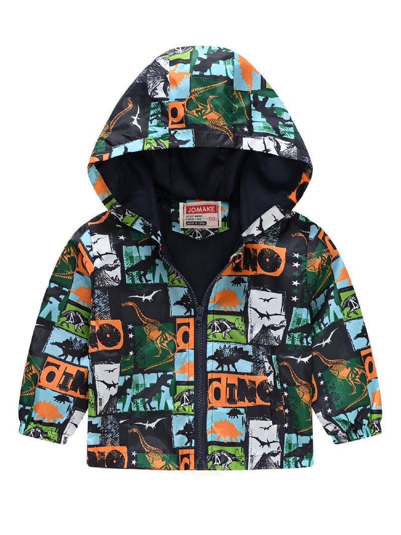 1kpl Poikien Tyttöjen Rento Söpö Dinosaur Print Vetoketjullinen Takki Neuletakki Kaulus Fleece Lämpötakki Talveksi