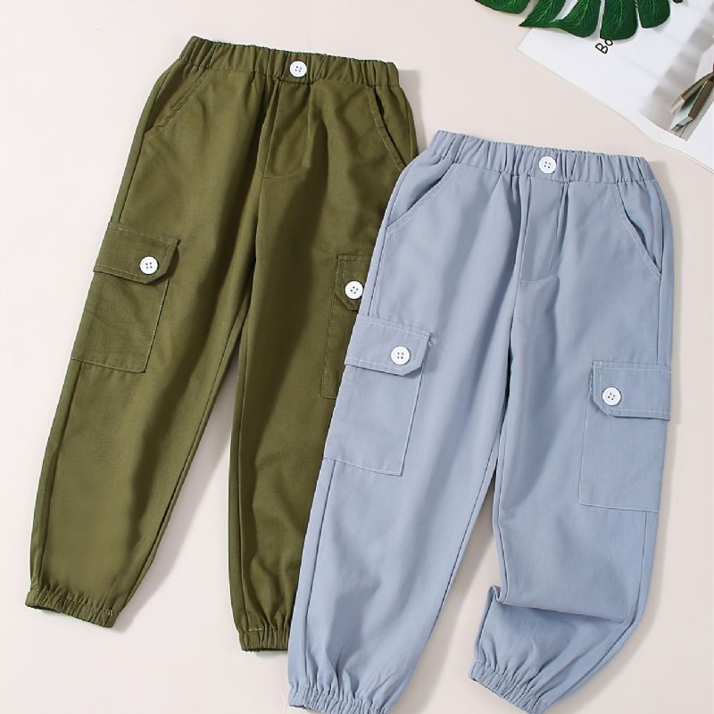 2 Kpl Syystalvi Poikien Rento Urheilu Yksiväriset Taskuhoususarjat