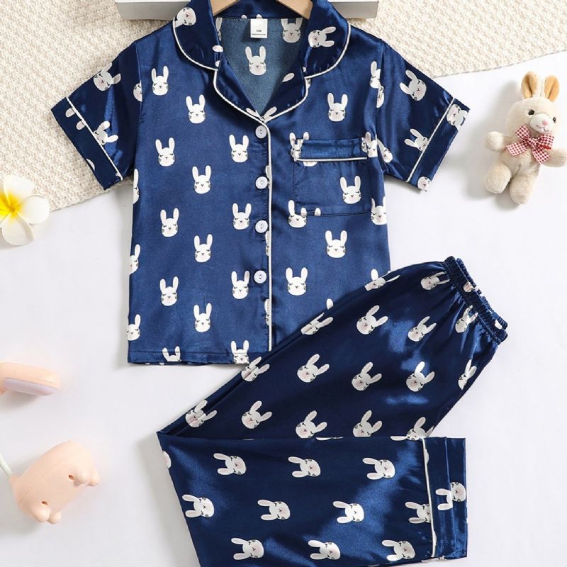 2 Kpl Tyttöjen Lyhythihainen Pyjamat Kotiasusetti Sarjakuva Kani Kuvio