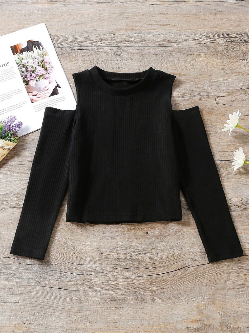 2 Kpl Tyttöjen Pitkähihaiset Neulotut Toppi & Shakkilautahousut