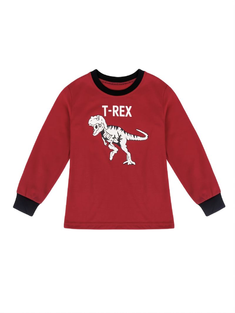 2kpl Lasten Poikien Pyjama Sarjakuva Dinosaur Print Pyöreäkauluksinen Pitkähihainen Toppi & Housusetti
