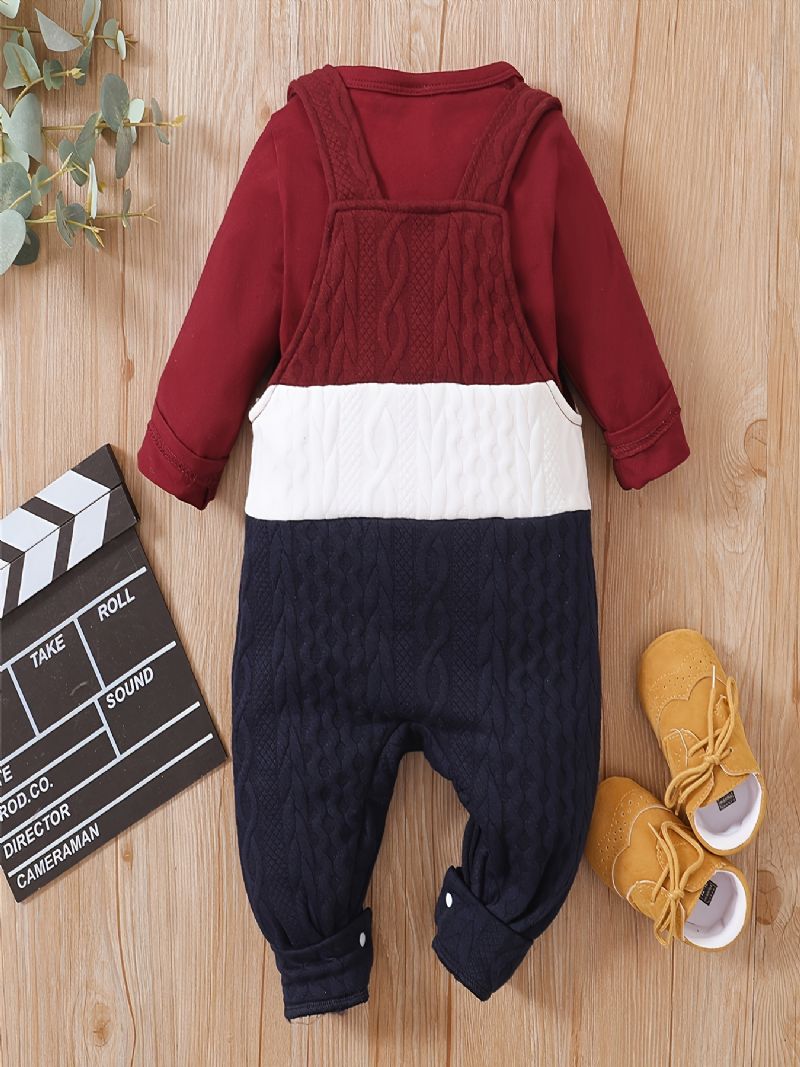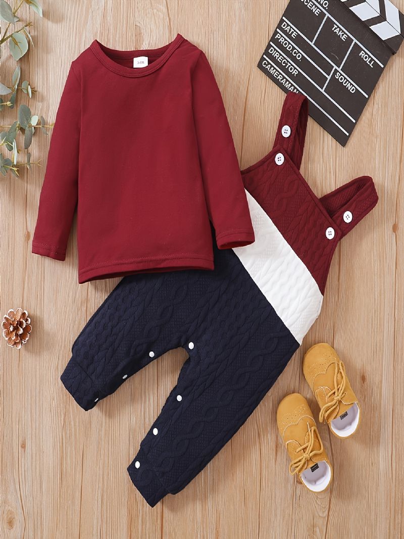 2kpl Lasten Setti Pojille Ja Tytöille Vauvalle Mukava Kiinteä Puuvillainen Pitkähihainen Toppi & Colorblock-neulotut Raidalliset Ruokalappuhousut