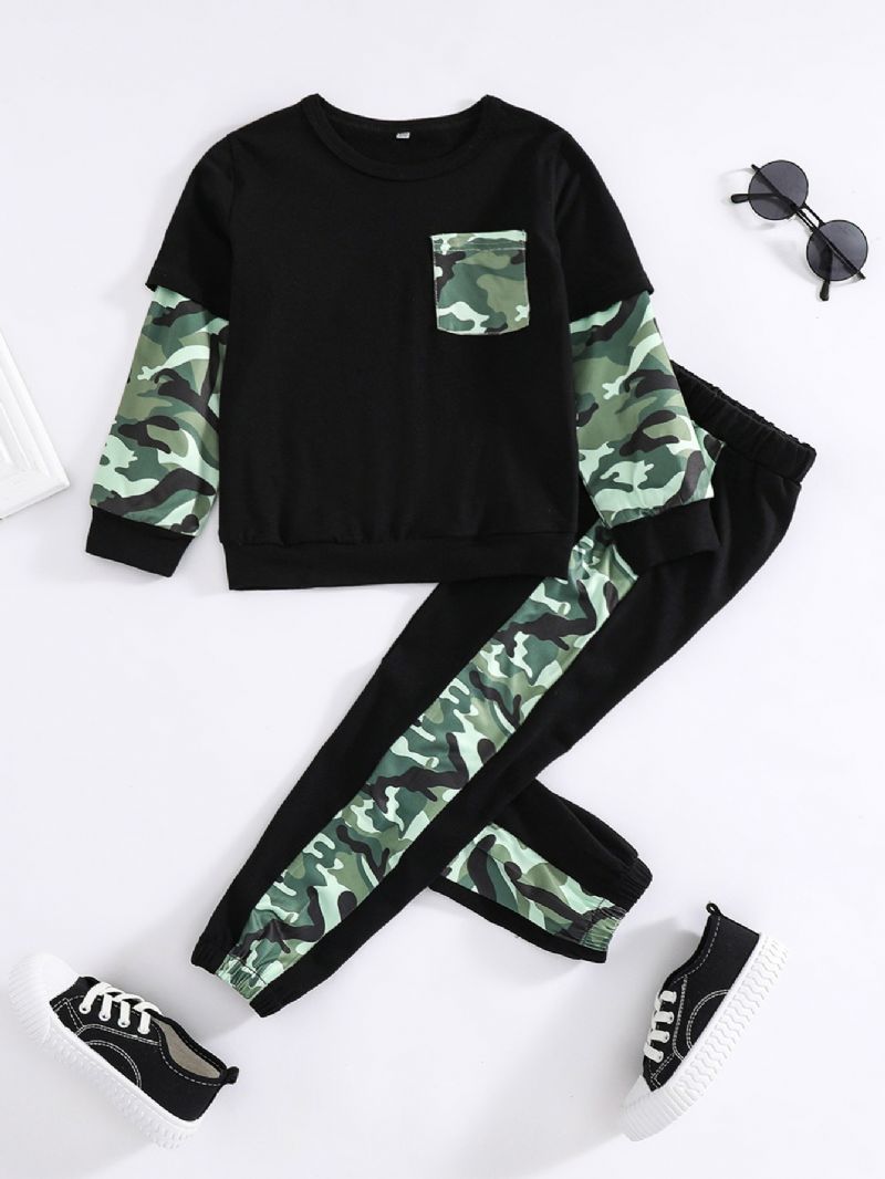 2kpl Poikien Camouflage Pitkähihaiset Housutsetti