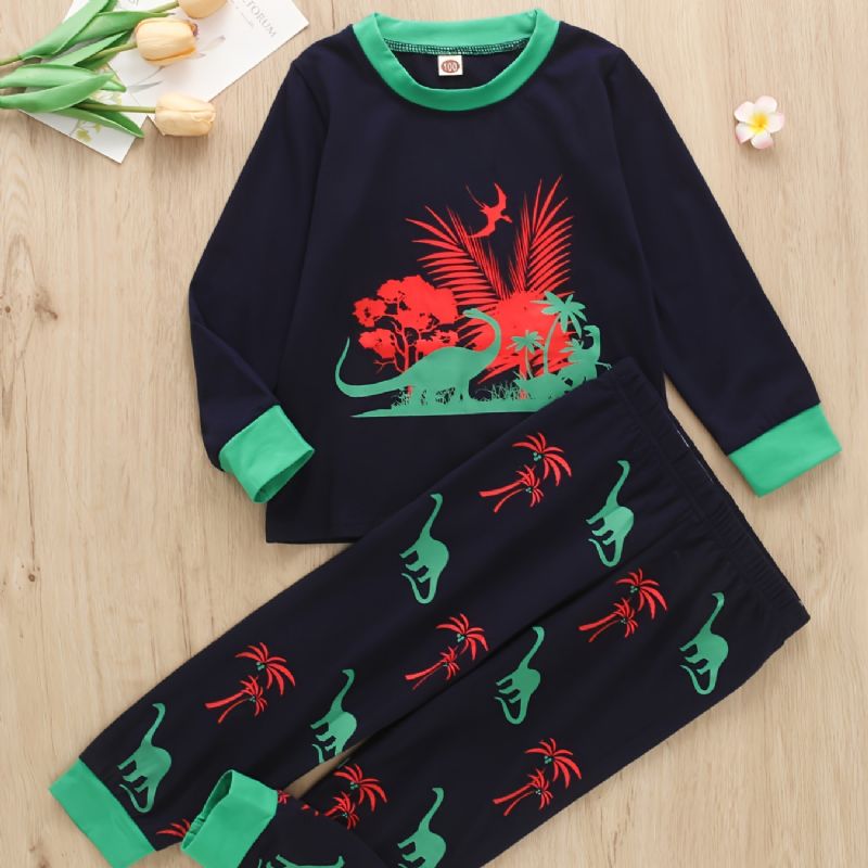 2kpl Poikien Casual Dinosaur Print Pitkähihainen Setti