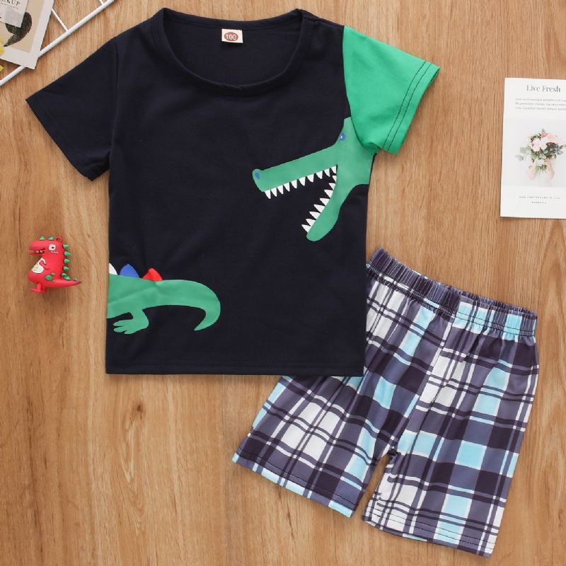 2kpl Poikien Cute Crocodile Print Lyhythihainen Rento Setti