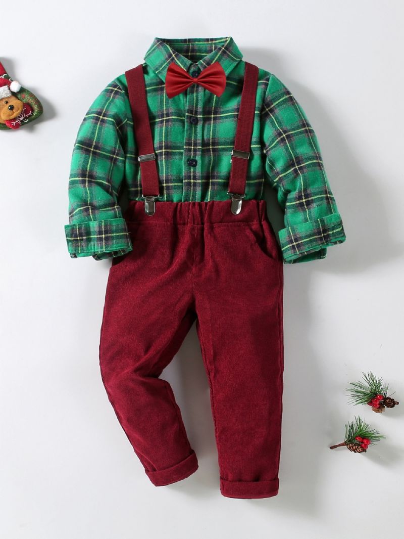 2kpl Poikien Mekkopuku Talvi Rento Ruudullinen Pitkähihainen Paita Rusetilla Ja Puuvillaisilla Housuilla