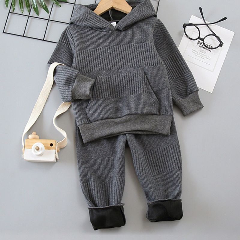 2kpl Poikien Pitkähihainen Hupullinen Tasku Yksivärinen Collegepaita Ja Housut