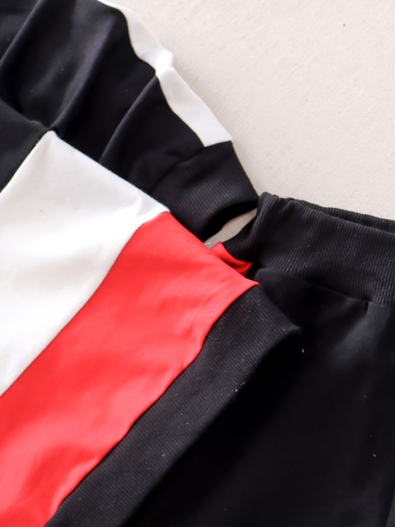 2kpl Poikien Vapaa-ajan Vaatesetti Jossa On Yksinkertainen Raidallinen Pitkähihainen Aktiivinen Huppari Ja Collegehousut Talvikäyttöön