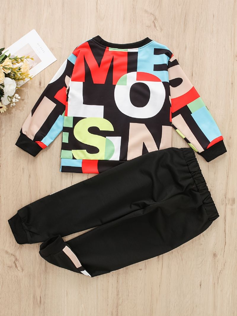 2kpl Vauvan Poikien Kirjekuvioinen Villapaita Pyöreäkauluksinen Pitkähihainen Collegepaita Ja Housutsetti