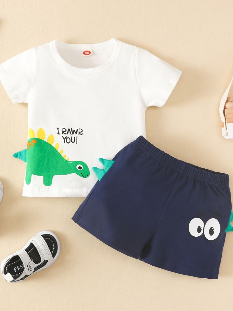 2kpl Vauvan Poikien Lyhythihainen Dinosaur Kirjekuvioinen T-paita & Shortsit Setti Lasten Vaatteet