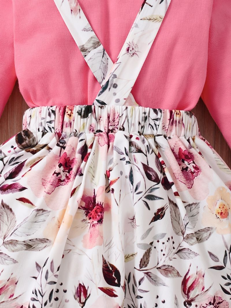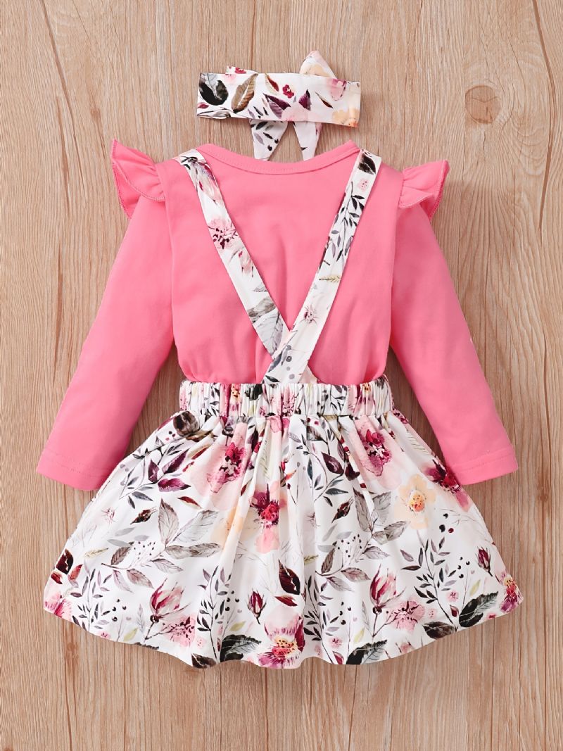 3 Kpl Tyttöjen Söpö Kiinteä Röyhelöinen Toppi & Kukkaprintti Suppinahame Ja Rusetti Pääpanta Talvijuhliin
