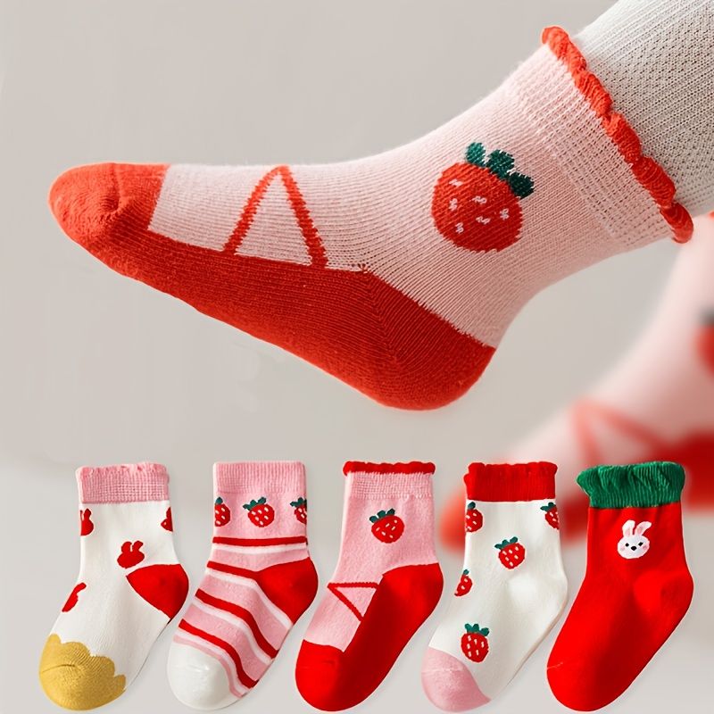 5 Paria Lasten Tyttöjen Pitsiä Mansikka-puuvillasukkia