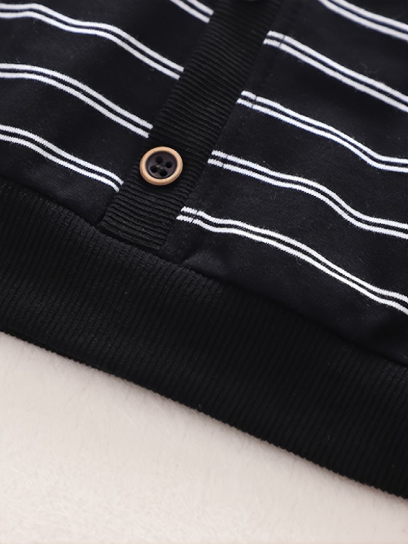 Autumn Winter Poikien Musta Raidallinen Crew Neck Fake 2-osainen Collegepaita Housut