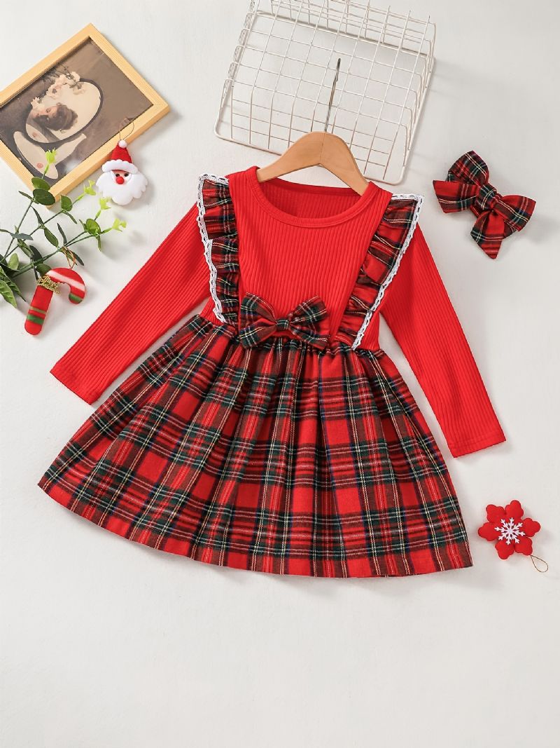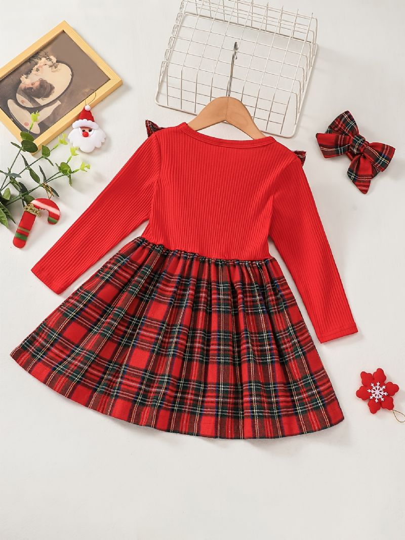 Jouluinen Lasten Tyttöjen Pitkähihainen Ruudullinen Kontrastimekko Ja Päänauhasetti Vaateasu