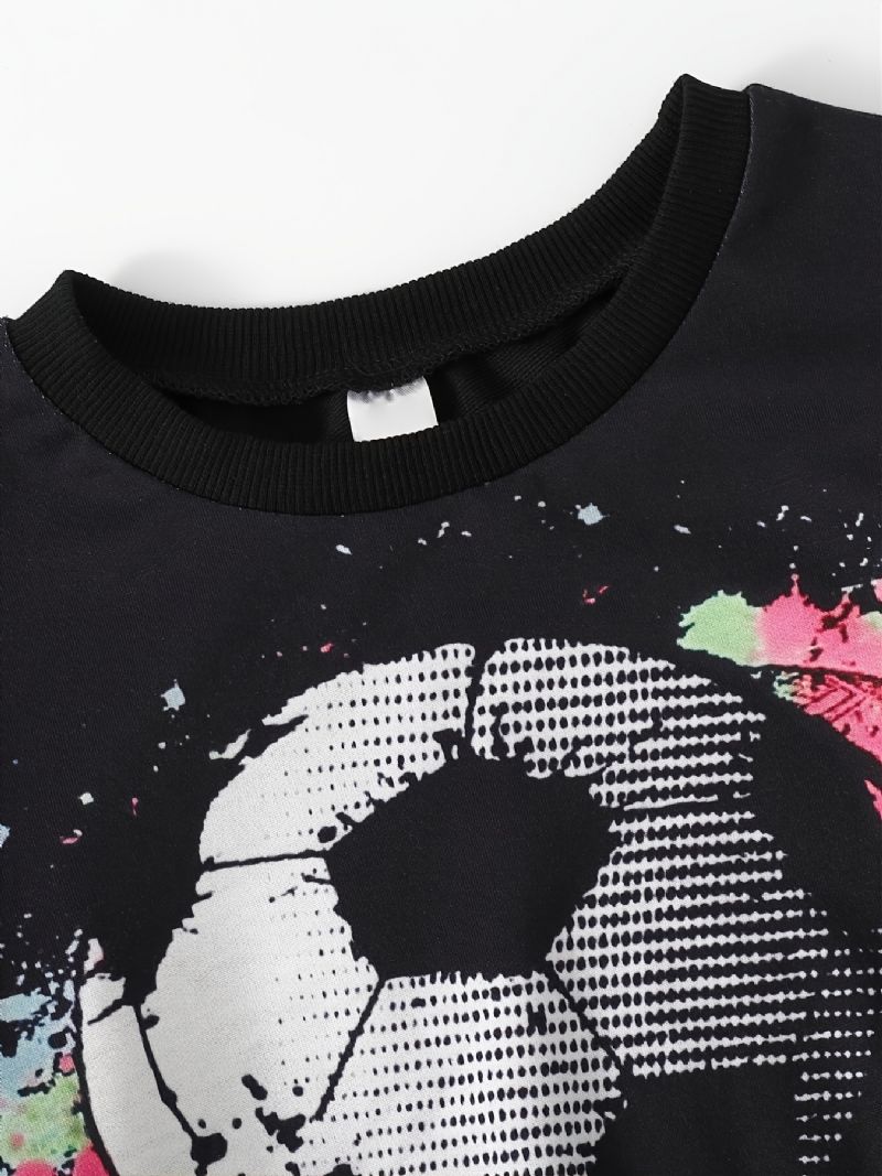 Lasten Poikien Villapaita Jalkapalloprintti Pitkähihainen Pyöreäkauluksinen Collegepaita Ja Housutsetti Vaatteet