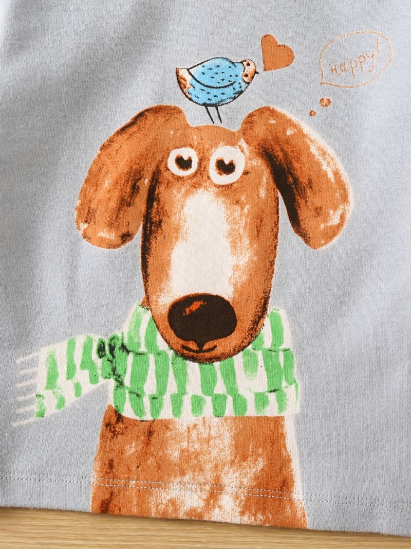 Lasten Pyjamat Söpöt Eläinkuvioiset Pyöreäkauluksiset Pitkähihaiset Toppi Ja Housut Vaatesetti Pojille Tytöille