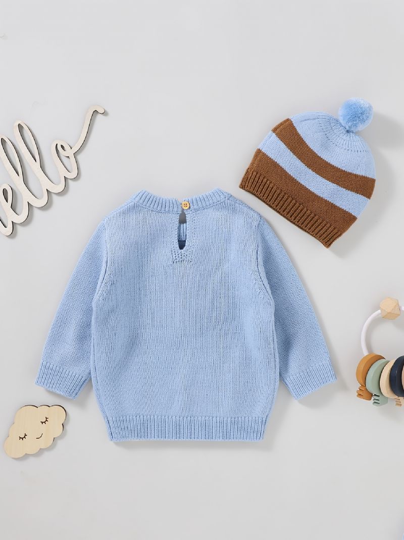 Poikien Fox Print Villapaita Pyöreäkauluksinen Pitkähihainen Neulottu Ja Hattusarja Lasten Vaatteet