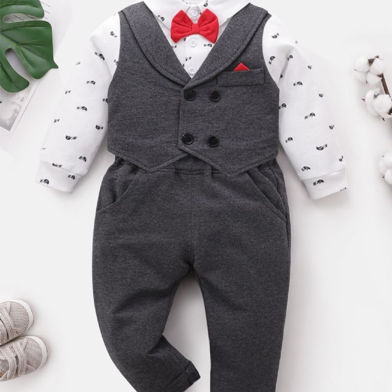 Poikien Herrasmiesasu Pitkähihainen Rusetti Silppuava Body Ja Housusetti Lasten Vaatteet