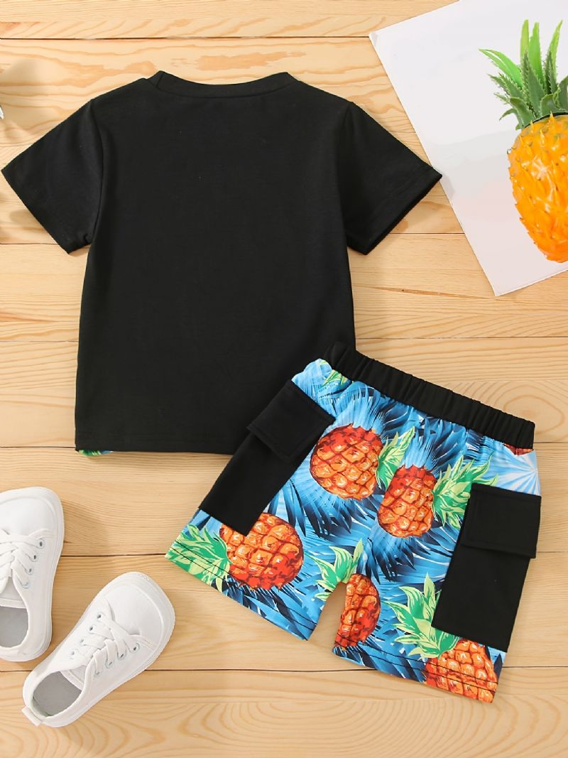 Poikien Kirjainlasit Ananasprintti T-paita Ja Taskushortsit Lasten Vaatesetti