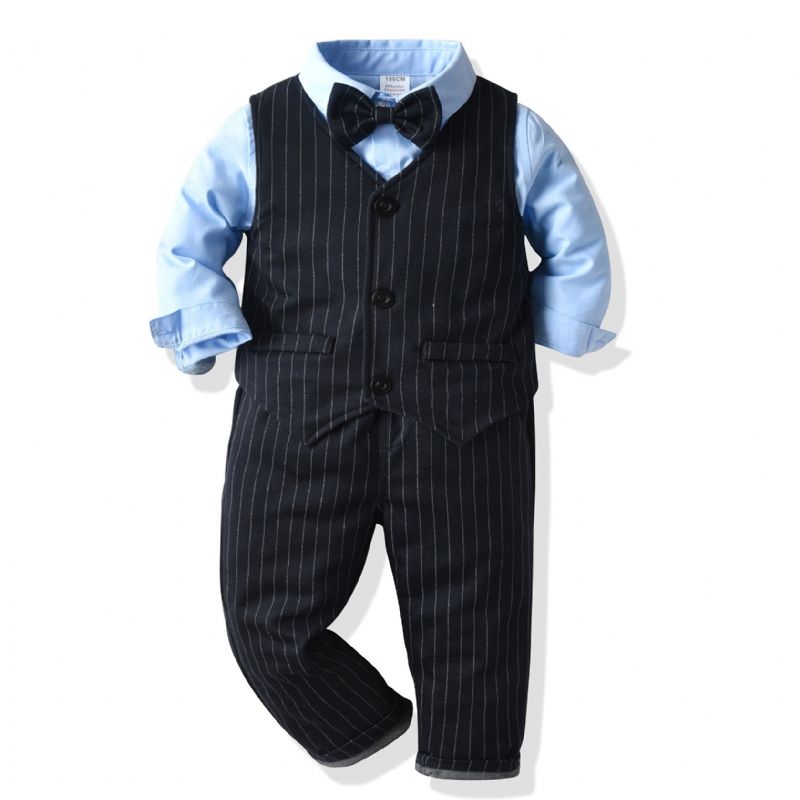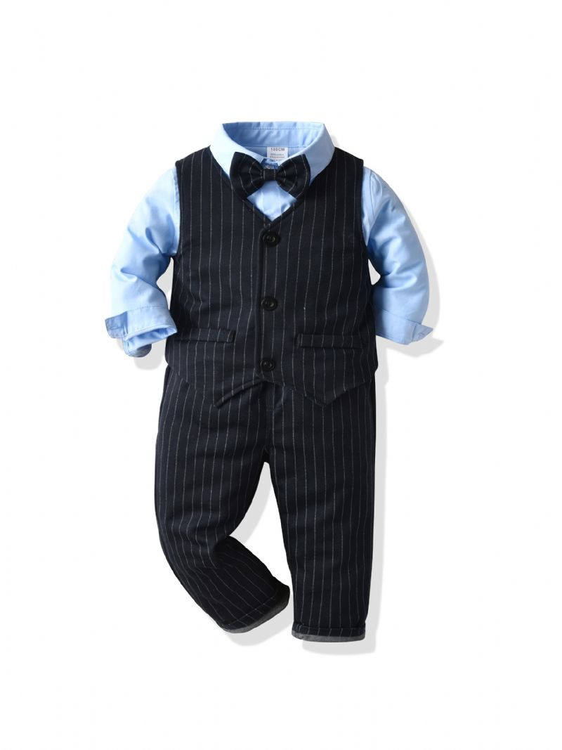Poikien Muodollinen Rusetti Onesies Pitkähihainen Paita Liivit Ja Housut Herrasmiessetti