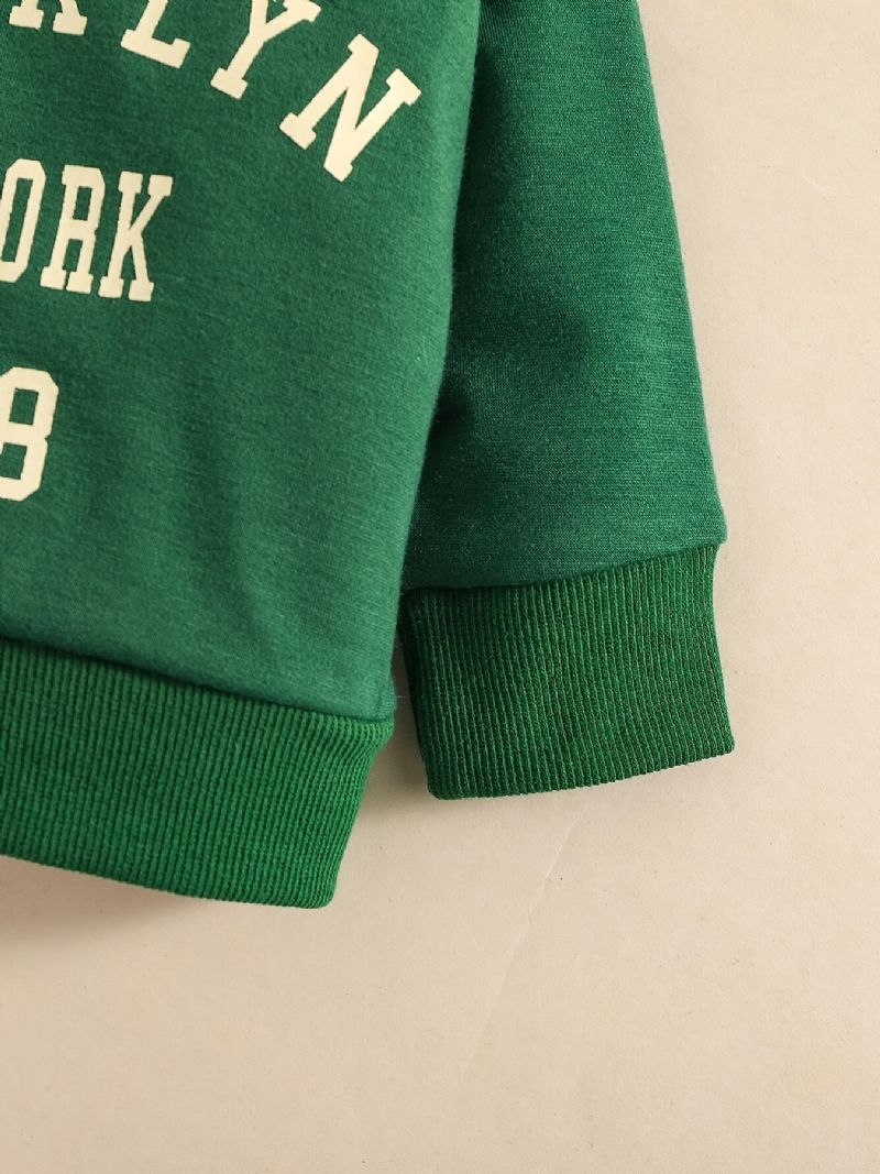 Poikien Neulepusero Kirjainprintti Pyöreäkauluksinen Pitkähihainen Collegepaita Ja Housutsetti Taaperovaatteet