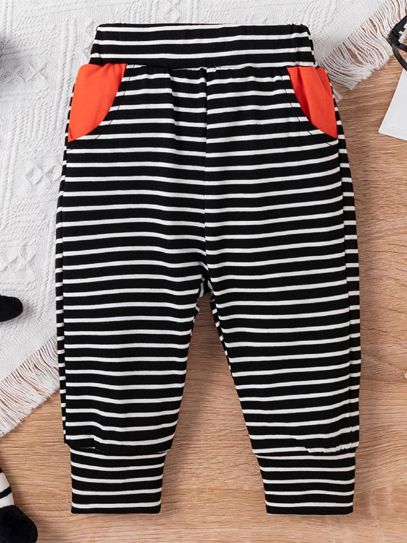 Poikien Rento Raidallinen Housut Ja Punaisilla Taskuilla