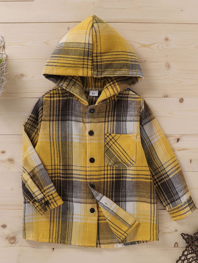 Poikien Ruudullinen Pitkähihainen Hupullinen Untuvatakki