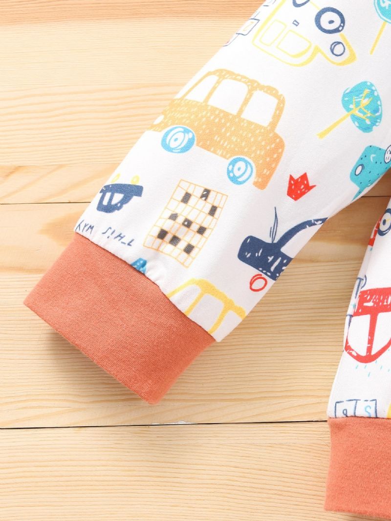 Poikien Sarjakuva Autokuvioinen Pitkähihainen Collegepaita Ja Kiinteät Farkkuhousut 2 Kpl