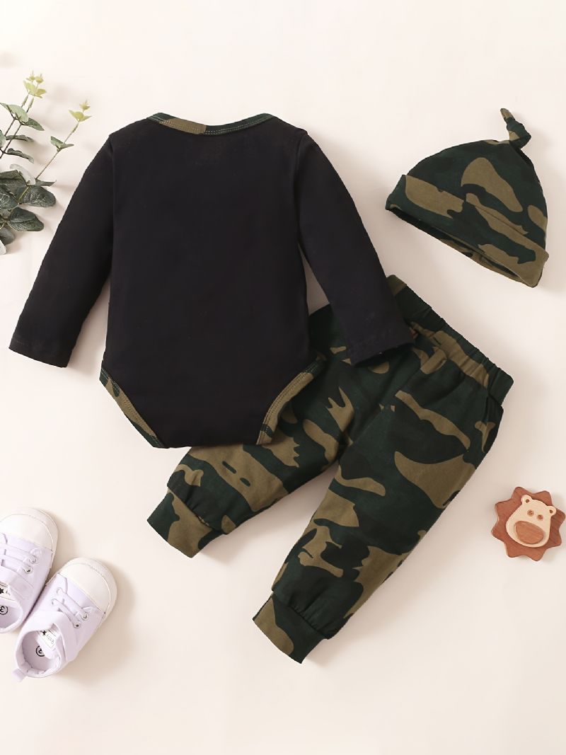 Poikien Sloganprintti Pitkähihainen Haalari + Camo Housut + Hattusetti Vauvan Vaatteet