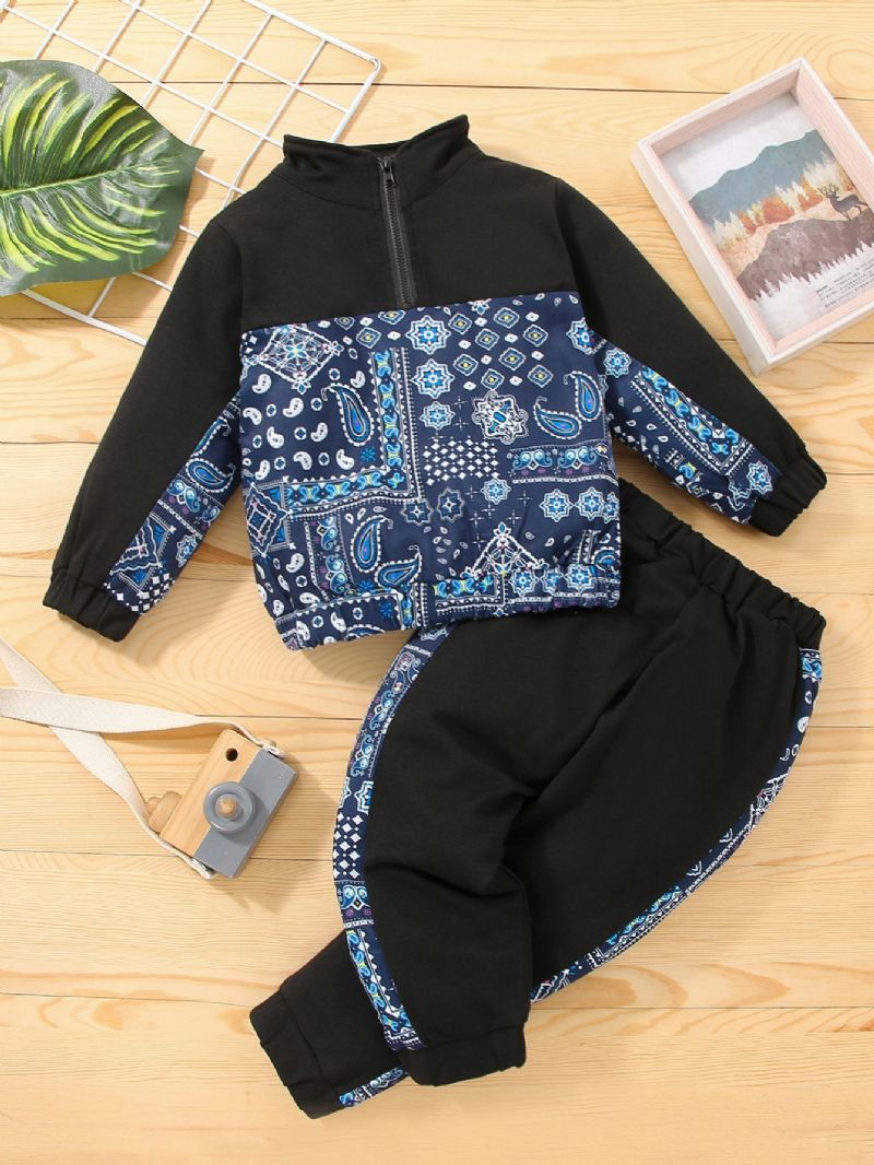 Poikien Vyötärö Kukkaprintti Puolikaulus Vetoketju Pitkähihainen Pusero Ja Housut