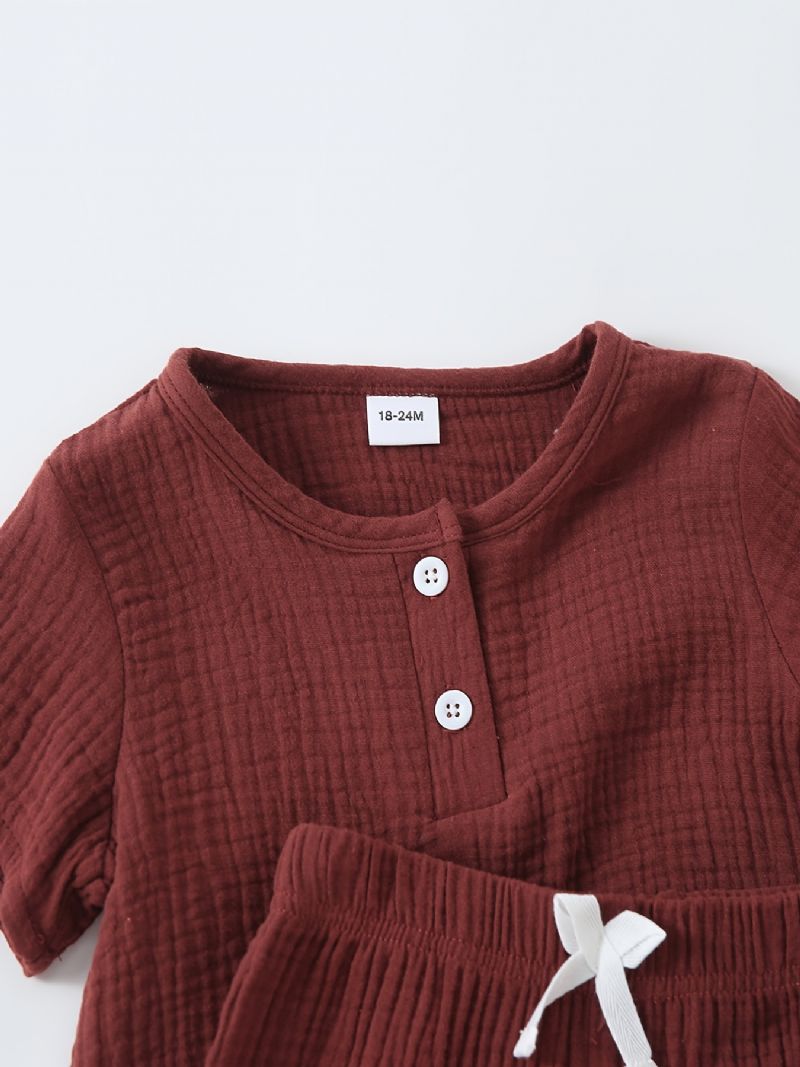 Poikien Yksivärinen Lyhythihainen Nappipaita + Housutsetti Lasten Vaatteita Kevätkesään