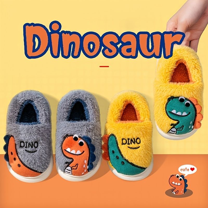 Pojat Tytöt Rennot Tossut Fleece Thermal Sarjakuva Dinosaur Print Slip-on Talveksi Kotiin