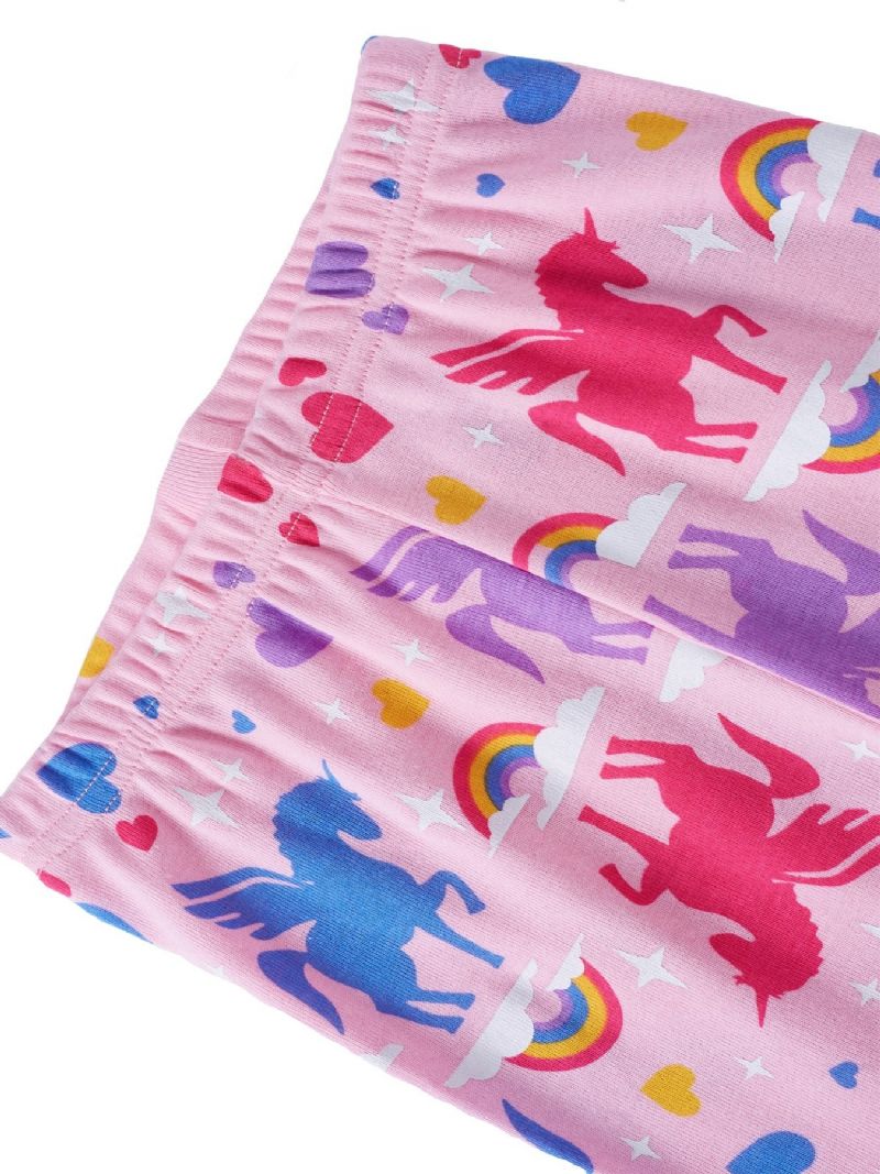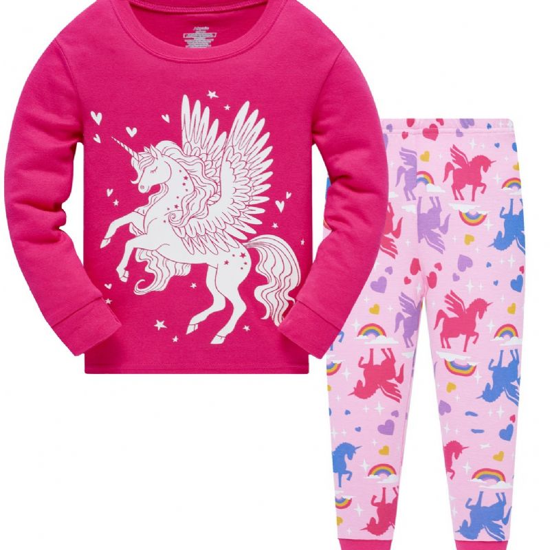 Popshion 2kpl Tyttöjen Fluorescent Unicorn Glowing Cartoon Animal Pitkähihainen Pyjama-puuvillapuku