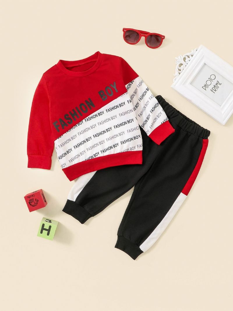 Syksy Talvi Pitkähihainen Pyöreä Pääntie Muoti Väriä Estävät Kirjaimet Muotipoikien Pojat Housupuku