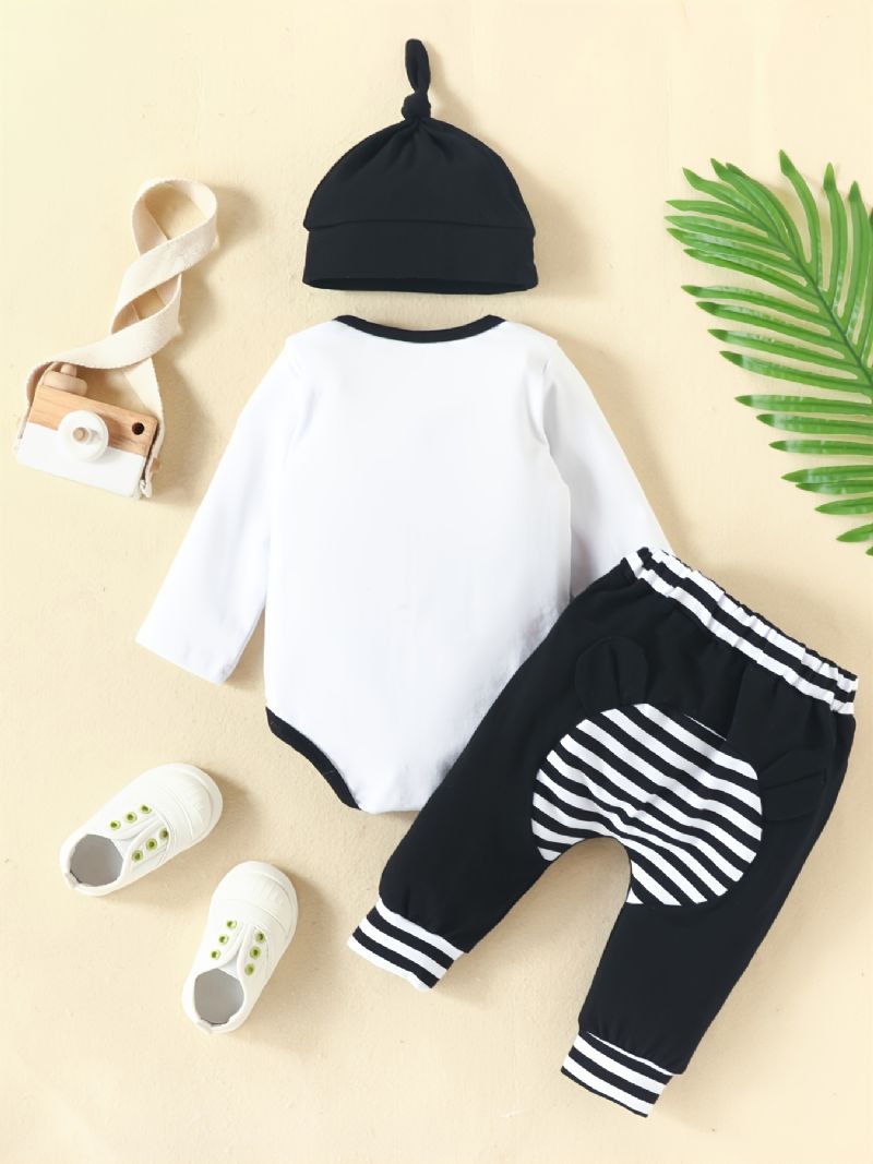Taapero Vastasyntynyt Poikavauva Pandaprintti Pitkähihainen Housu + Housut + Hattu 3 Kpl Setti