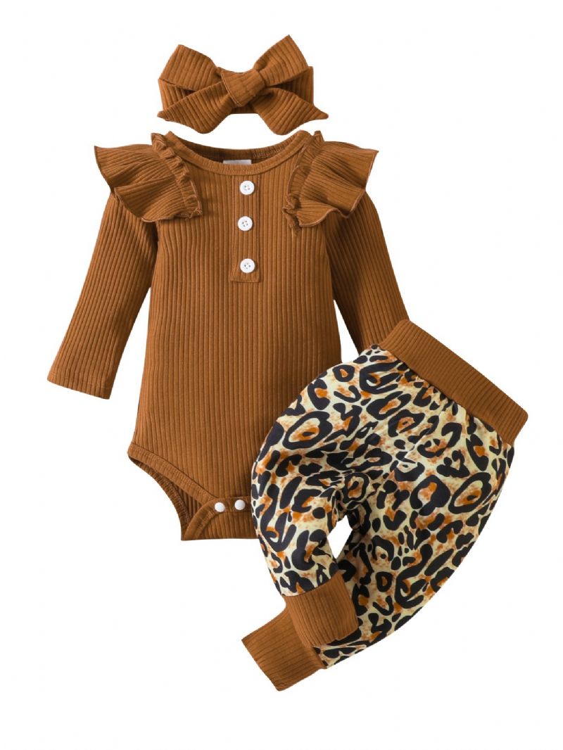 Taapero Vastasyntynyt Tyttövauva Pitkähihainen Romper Plus Band 3 Kpl Setti