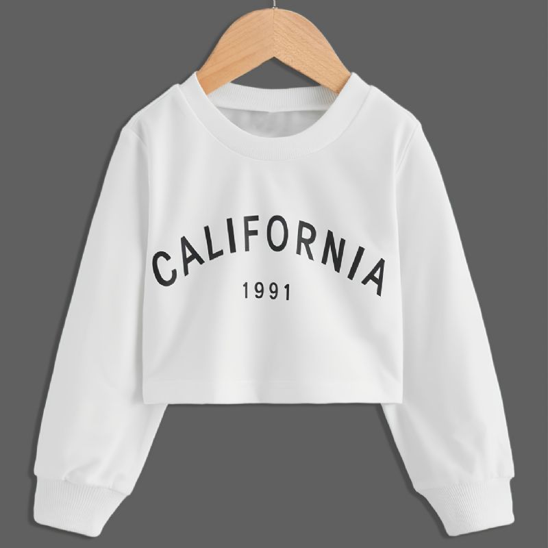 Taaperotyttöjen Collegepaita Rento Kirjekuvioinen Pitkähihainen Pyöreäkauluksinen Neulepaita