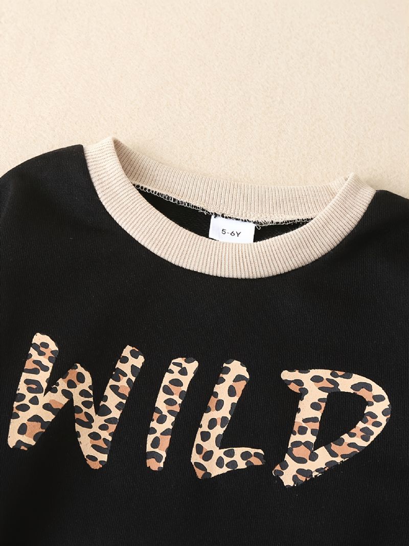 Taaperotyttösetti Talvi Rento Leopardi Colorblock Pitkähihainen Villapaitasetti