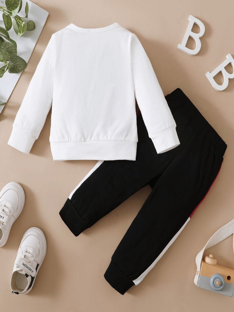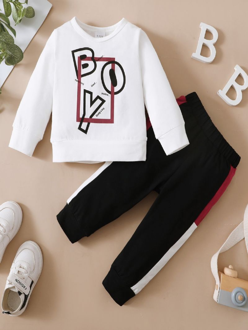 Toddler Poikien Letter Crew Neck Pitkähihainen Collegepaita Jogger Collegehousut