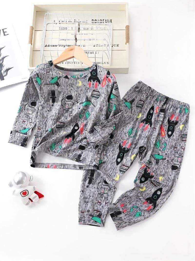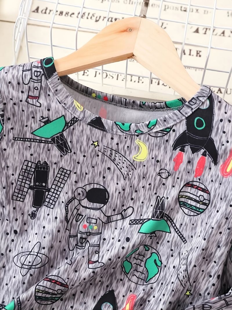 Toddler Poikien Sarjakuva Spaceman Rocket Astronaut Print Pitkähihainen Paita Ja Housut