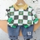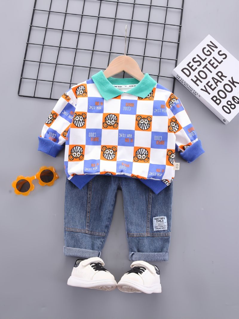 Toddler Vauvan Poikien Sarjakuva Ruudullinen Painettu Pitkähihainen Rintapaita Ja Farkut