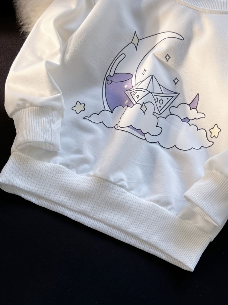 Tytöt Pusero Söpöt Pilvet Moon Print Pitkähihainen Collegepaita Topit Lasten Vaatteet