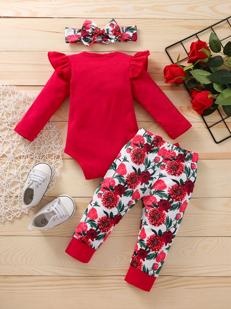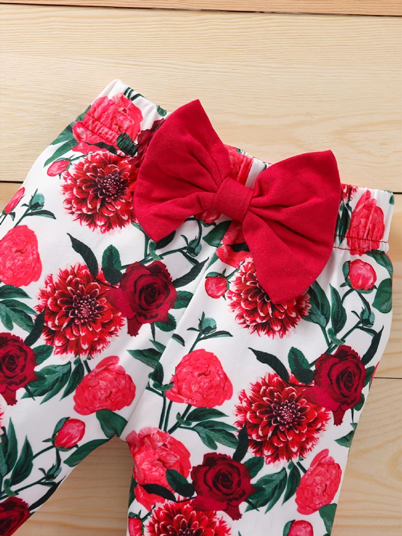 Tyttöjen Alphabet Floral Print Onesie Housut Settiit