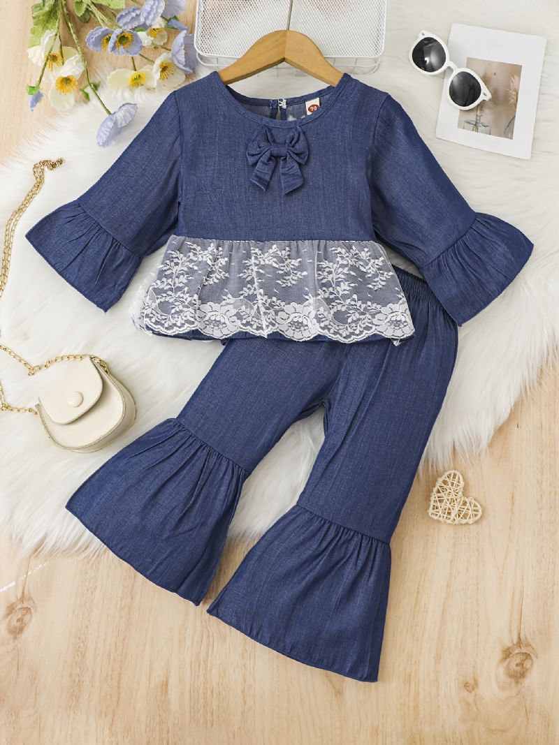 Tyttöjen Farkkupitsiset Pitkähihaiset Toppi & Levenevät Housut