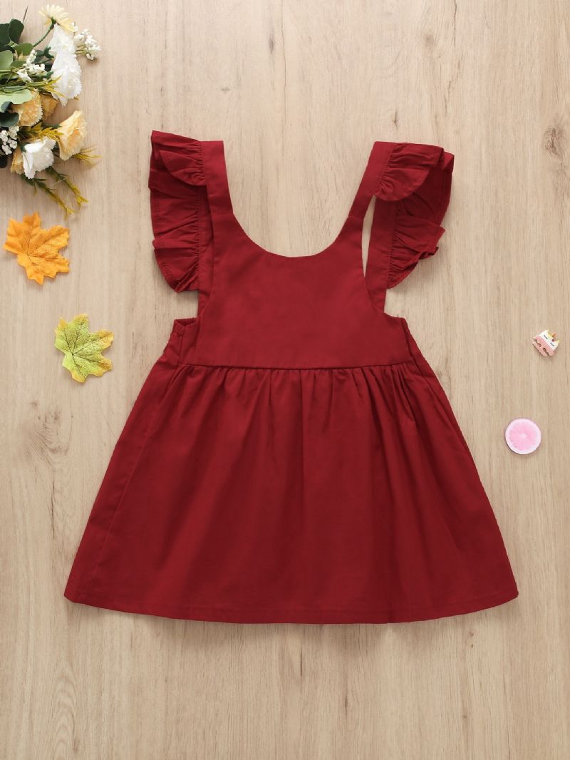 Tyttöjen Henkselit Hihaton Röyhelömekko Kiinteä Mekko