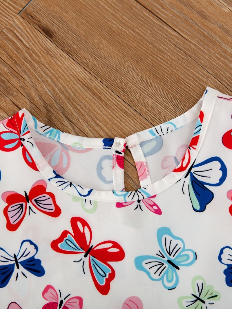 Tyttöjen Hihaton Perhoskuvioinen Mekko Ja Neuletakaiset Lastenvaatteet
