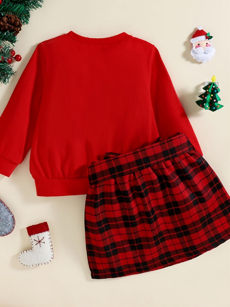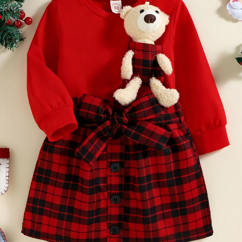Tyttöjen Irrotettava Sarjakuva Karhupusero Ja Ruudullinen Rusettihamesarja Jouluksi