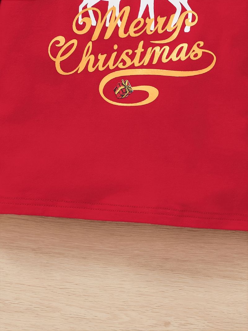 Tyttöjen Jouluinen Hirviprintti Pieni Lentävä Olkapää Pitkähihainen Ja Vyötäröinen Rusetti Punainen Musta Ruudullinen Hamepuku