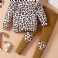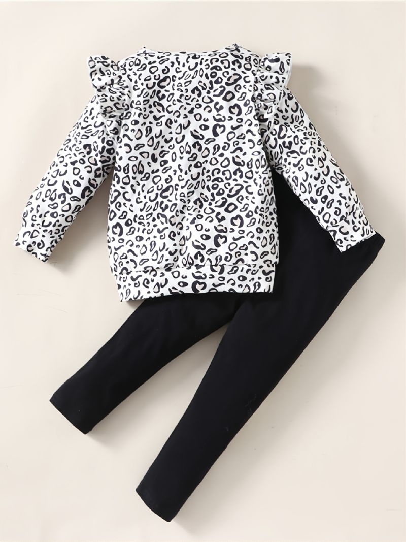 Tyttöjen Leopardikuvioinen Neulepusero + Sydämenmuotoinen Housupuku Vauvan Lasten Vaatteet