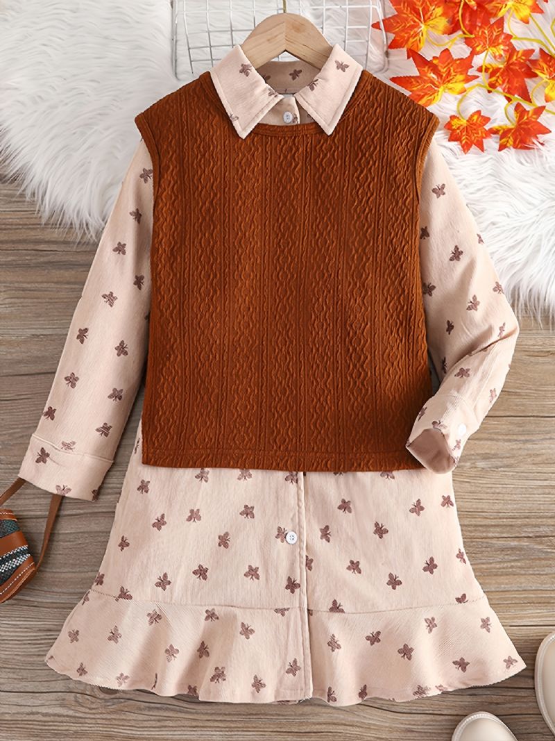 Tyttöjen Perhosprintti Pitkähihainen Mekko Ja Hihaton Liivisetti Lasten Vaatteet
